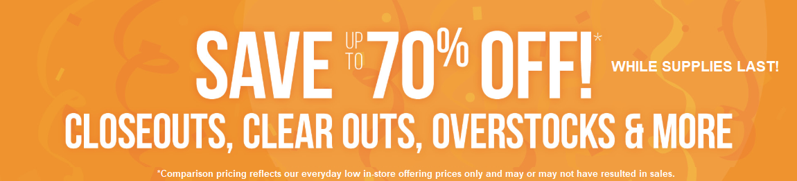 Closeouts, floor samples, overstocks, and warehouse specials in person at 1111 Vine St. Liverpool, NY 13088!
