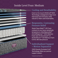 Experience a top-tier sleep with Beautyrest World Class. Featuring Beautyrest's 1000-density Pocketed Coil Technology and higher-density foams, this mattress delivers exceptional support and motion separation. The new World Class Relief HD Foam, found in all Level Four mattresses, offers outstanding pressure relief that adapts to your body. Additionally, Level Four mattresses incorporate double the SurfaceTouch Gel Memory Foam, enhancing pressure relief at the surface. InfiniCool MAX Technology provides advanced cooling through vertical cooling fibers in Beautyrest's World Class Quilted mattresses.