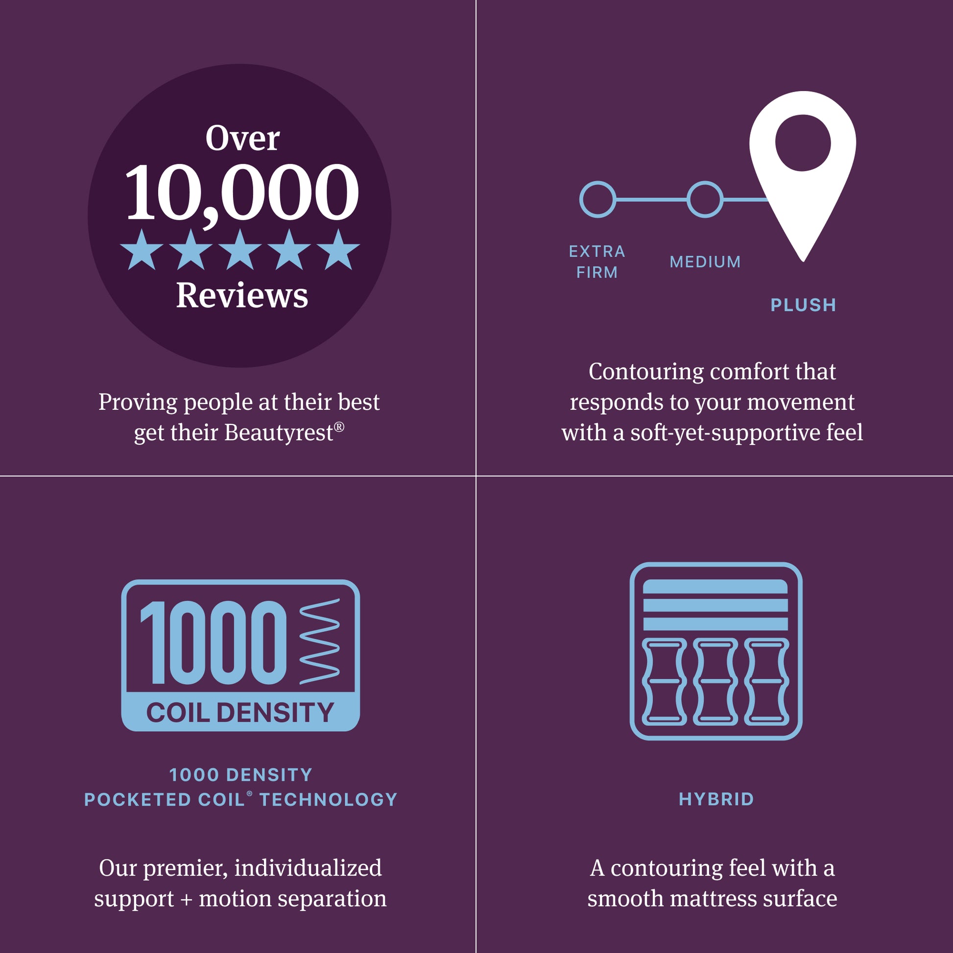 Elevate your sleep to a world-class experience with Beautyrest World Class. Equipped with 1000-density Pocketed Coil Technology and high-density foams, these mattresses deliver exceptional personalized support and motion isolation. The newly introduced World Class Relief HD Foam, featured in all Level Four models, provides outstanding pressure relief that adapts to your body's needs. Level Four mattresses also incorporate InfiniCool MAX Technology, utilizing vertical cooling fibers for advanced temperature regulation. For those seeking hybrid comfort, Beautyrest World Class Hybrid mattresses combine InfiniCool Technology with Beautyrest ActiveResponse MAX HD Memory Foam, offering a cool sleep surface and enhanced pressure relief. Backed by 100 years of innovation-and more to come-Beautyrest continues to redefine what it means to sleep at your best.